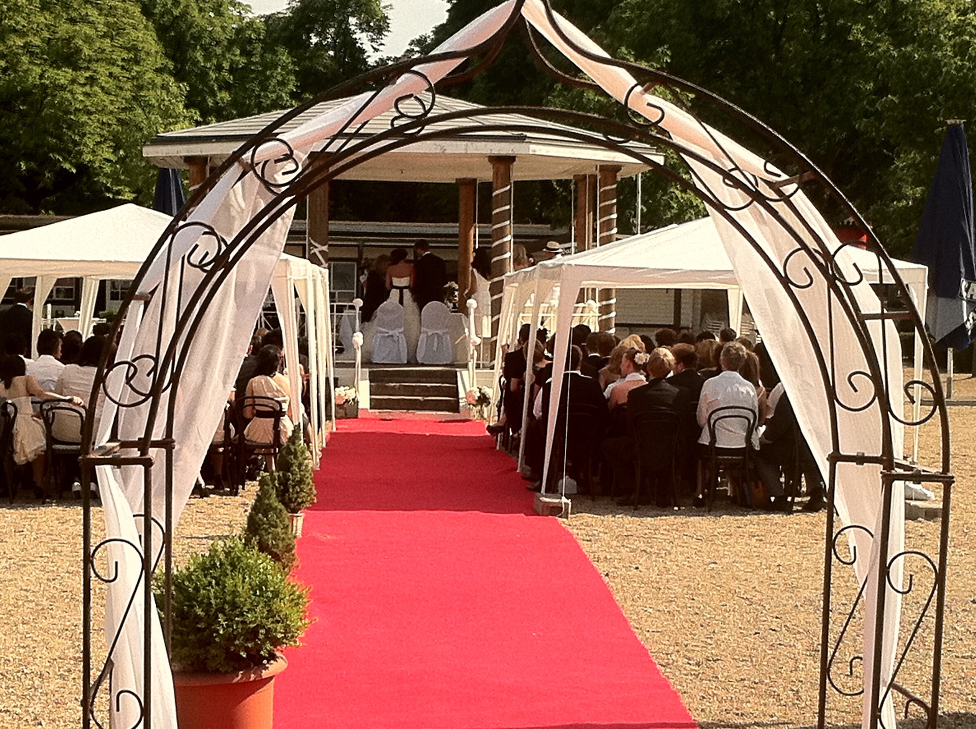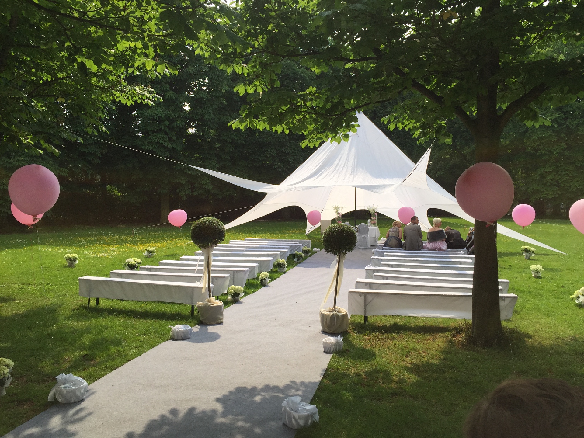 Träumt ihr von einer freien Trauung, haben wir für euer Open-Air Ja-Wort eine schöne Wiese direkt am Festsaal - mit passender weißer Bestuhlung und „weißem Teppich“ unter einem romantischen weißen Pagodenzelt. Weitere Details euer Hochzeit wie zum Menü oder Büffet, zum Blumenschmucka auf den Tischen, zur Musik und vielem mehr, besprechen wir in Ruhe mit euch oder eurem Weddingplaner.