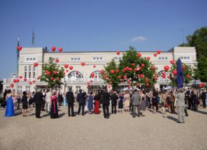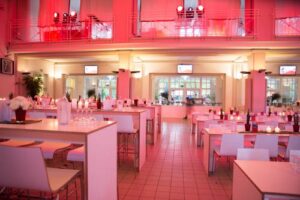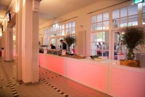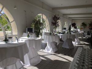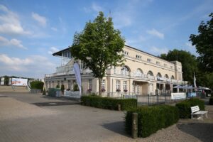 Mit zwei Theken und einer Fläche von gut 400 Quadratmetern ist der Biebricher Saal der Krefelder Rennbahn ideal für große Feste samt Tanzfläche. Planen Sie einen Empfang mit Sekt und Cocktails – vielleicht als Begrüßung für Ihre Outdoor-Messe auf unserem Gelände oder für eine Produktvorstellung – können Sie im Biebricher Saal mit über 1.000 Personen planen. Möchten Sie gemeinsam gut speisen und ausgelassen feiern, können Sie mit über 400 Gästen an festlich gedeckten Tafeln platznehmen.